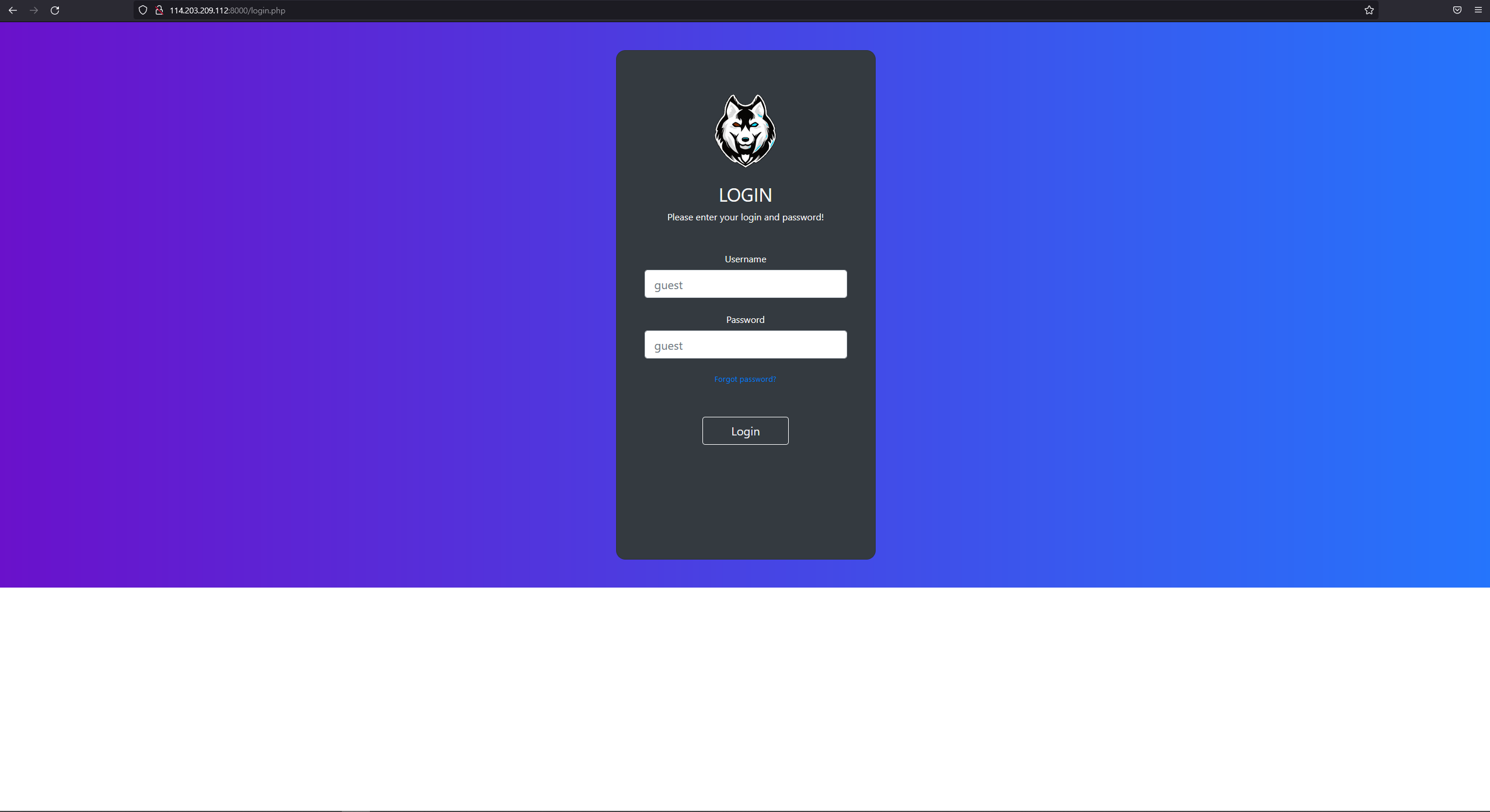 r.post("http://114.203.209.112:8000/login.php", headers=headers, cookies=cookies, data={"username":"guest", "password":"guest"})