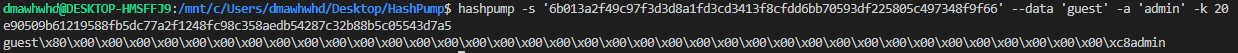 이 조건들을 모두 만족하기에 공격이 가능합니다. hashpump라는 tool을 이용하여 payload를 작성했습니다.