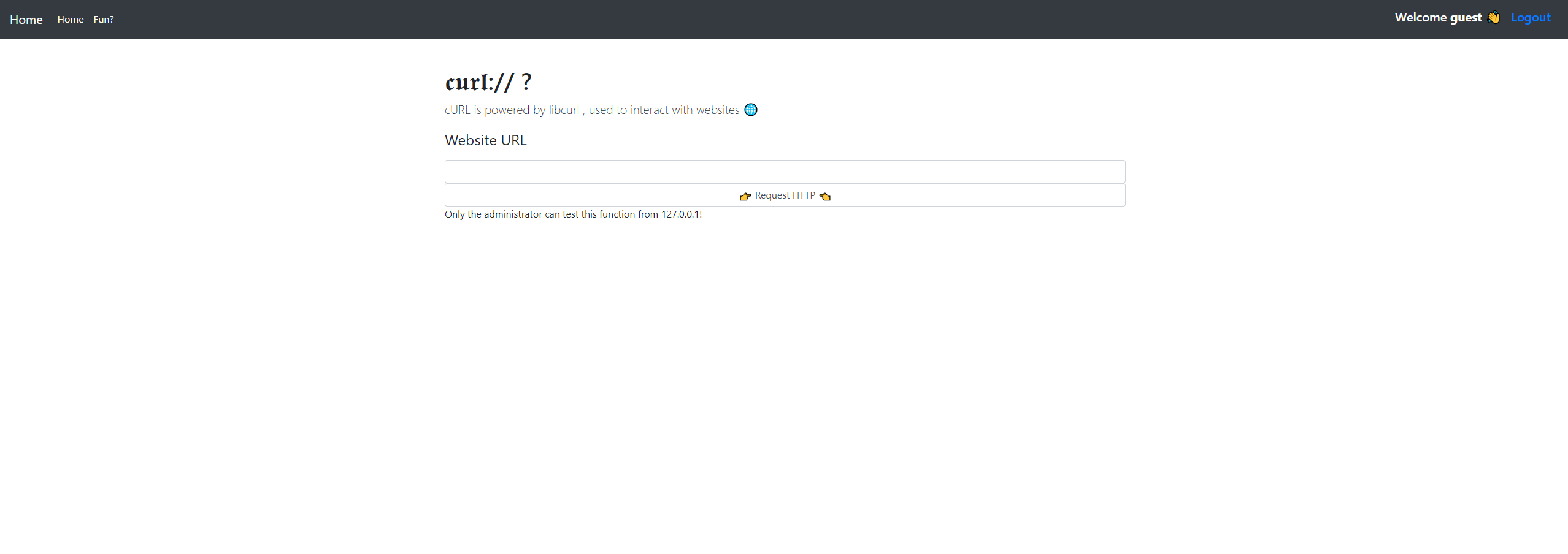 guest, guest로 로그인 하게 되면 curl을 보낼 수 있는 기능이 있습니다. 하지만 localhost이어야 가능하다고 알려줍니다.
